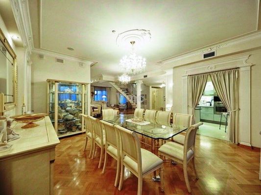 Без комиссии. Делимся комиссией. Предлагается в аренду отличная двухуровневая квартира в малоквартирном клубном особняке. Функциональная планировка: просторная гостиная 95 метров, изолированные комнаты: 30, 24 и 15кв.м., две полноценные ванные комнаты, гостевой санузел, гардеробная. Дизайнерский ремонт, кондиционирование, обогрев полов, система "Умный дом", паркет, бойлер, камин, интернет, спутниковое ТВ. Кухня и 2,5 санузла с джакузи, и душевой кабиной оснащены и оборудованы современной высококачественной техникой. Круглосуточная охрана, вход в подземный гараж из подъезда (предоставляется 1 машиноместо-входит в стоимость). Великолепные виды с двух балконов и террасы (32 кв.м) на исторический центр Москвы. В доме имеется круглосуточная охрана и финтес-зал для жильцов. Рассмотрим оплату по безналу.