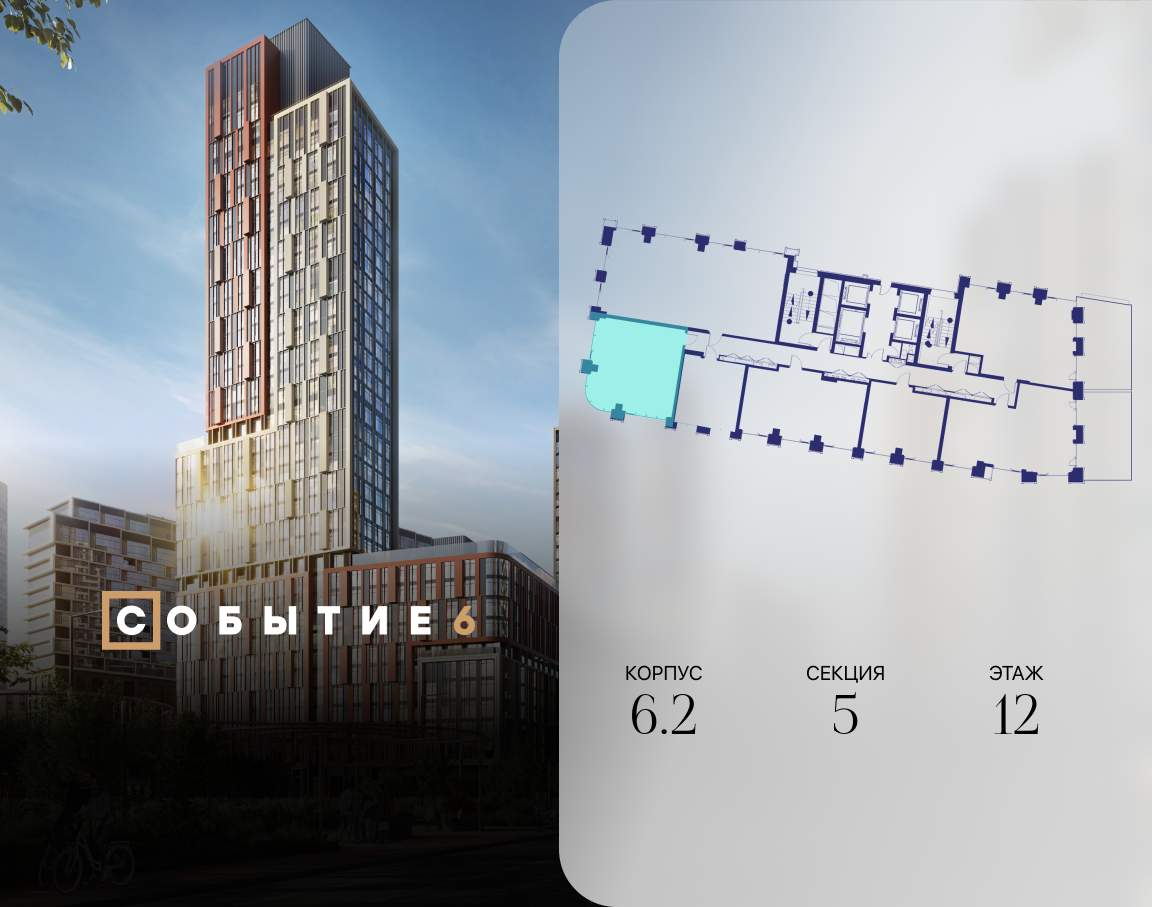 Продаётся 1-комнатная квартира от застройщика: общая площадь 56.20 м, жилая 14.80 м, кухня 27.10 м, 12-й этаж, жилой квартал «Событие-6», корпус 2 (секция 5) Срок сдачи: 1 квартал 2029 года. Позвоните сейчас и забронируйте квартиру! Продуманный до деталей. Созданный для жизни, полной счастливых событий. Парк-квартал СОБЫТИЕ - это жизнь класса премиум в престижном районе на Мосфильмовской улице. Архитектура мирового уровня. Выигрышное расположение на границе природного комплекса «Долина реки Раменки». Все для комфортной жизни и досуга: от детсадов и школ до ресторанов и медцентров. И новая точка притяжения - уже готовый парк «Событие» с пространствами активности для всех возрастов и интересов. Особенности квартала: «Парящие» мосты и парк под облаками - уникальный дом с самыми завораживающими видами из окон «в пол» Собственный парк - сразу за порогом! Архитектурная концепция от известных международных бюро LDA Design и UHA London Инфраструктура «тапочной доступности»: в кафе, школу, магазин - за пару минут! Внутренний двор - настоящее продолжение вашего дома: закрытая охраняемая территория без машин, развивающие детские площадки, воркауты-зоны для тех, кто хочет быть в форме, площади для праздников и посиделок с соседями. Декларация: https://xn--80az8a.xn--d1aqf.xn--p1ai/files/70726F6A6465636C2E646F63732E697A643A0FA9740BDF5B4B419E34012DA8CC5601?inline=1