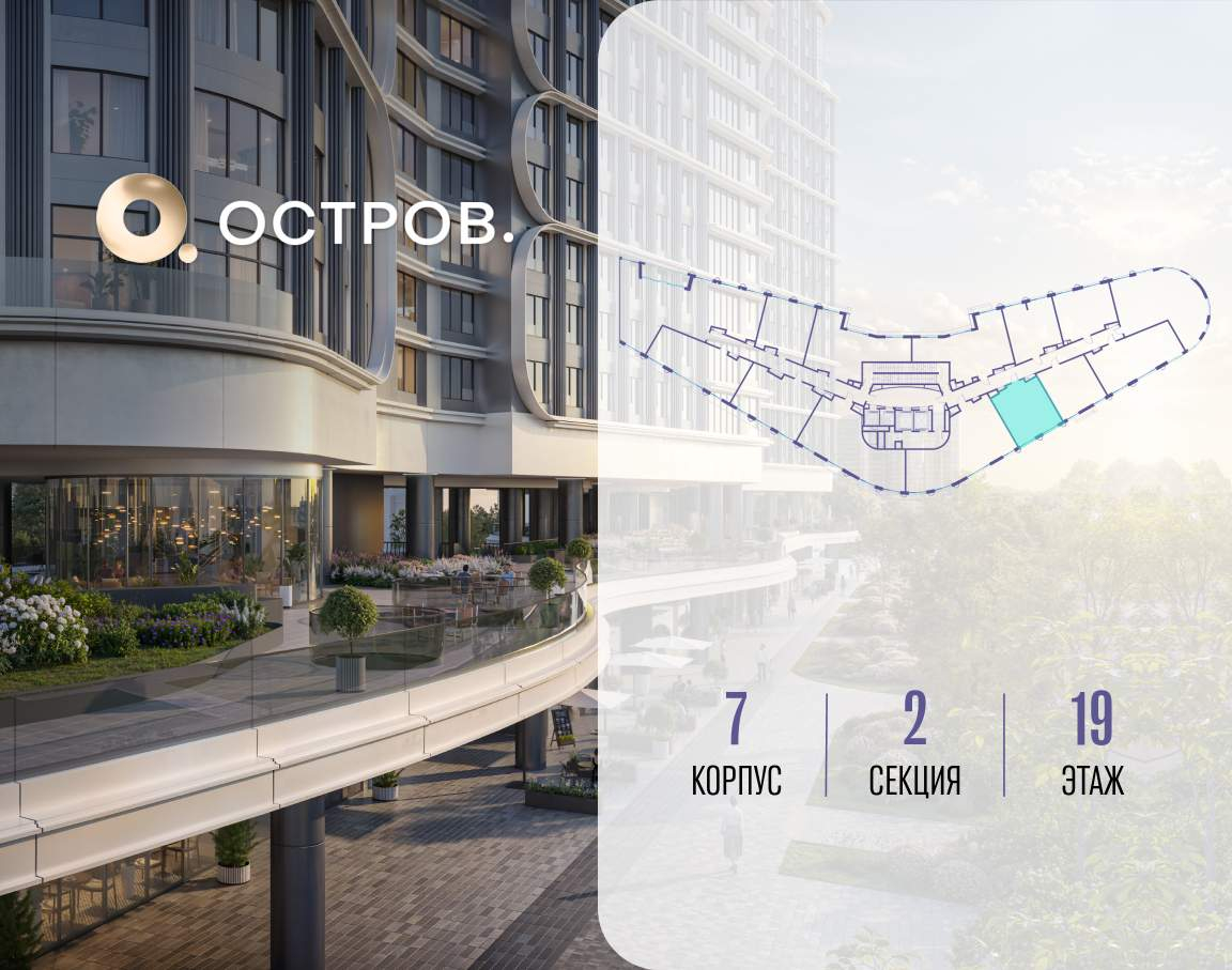 Продаётся 1-комн. квартира от застройщика: общая площадь 50.00 м, жилая 17.50 м, кухня 23.30 м, 19-й этаж, жилой квартал «Остров 7», корпус 7 (секция 2) . Срок сдачи: 3 квартал 2028 года. 1 совмещенный санузел. В жилой зоне 2 больших окна на одну сторону, хорошая инсоляция. Позвоните сейчас и забронируйте квартиру! ОСТРОВ от Донстрой - жилой комплекс на западе Москвы, в Мневниковской пойме. Уникальное преимущество комплекса - в том, что он обособлен от города рекой и природным парком (650 га) . Благодаря природному окружению эта территория имеет лучший экологический рейтинг в столице. Кварталы ОСТРОВА объединены ландшафтным дизайном в единое пространство - с набережными и Центральным бульваром. На ОСТРОВЕ любые объекты, необходимые для полноценной жизни и отдыха, находятся на расстоянии 15-минутной прогулки. Торговый центр и супермаркеты, кафе и рестораны, фитнес, салоны красоты, школы и детские сады. А также крупнейший в Москве спортивный кластер. Декларация: https://xn--80az8a.xn--d1aqf.xn--p1ai/files/70726F6A6465636C2E646F63732E697A643AA99B131122144E209F4F843ADF9A3D27?inline=1