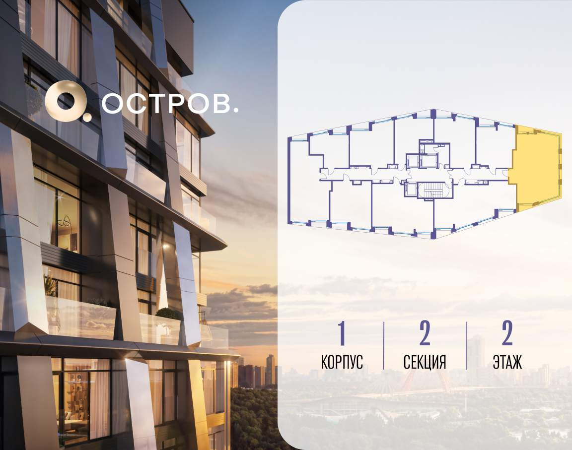 Продаётся 2-комн. квартира от застройщика: общая площадь 81.00 м, жилая 21.70 м, кухня 34.10 м, 2-й этаж, жилой квартал «Остров 12», корпус 1 (секция 2) . Срок сдачи: 1 квартал 2029 года. 2 совмещенных санузла. В жилой зоне 2 больших окна на одну сторону, хорошая инсоляция. Позвоните сейчас и забронируйте квартиру! ОСТРОВ от Донстрой - жилой комплекс на западе Москвы, в Мневниковской пойме. Уникальное преимущество комплекса - в том, что он обособлен от города рекой и природным парком (650 га) . Благодаря природному окружению эта территория имеет лучший экологический рейтинг в столице. Кварталы ОСТРОВА объединены ландшафтным дизайном в единое пространство - с набережными и Центральным бульваром. На ОСТРОВЕ любые объекты, необходимые для полноценной жизни и отдыха, находятся на расстоянии 15-минутной прогулки. Торговый центр и супермаркеты, кафе и рестораны, фитнес, салоны красоты, школы и детские сады. А также крупнейший в Москве спортивный кластер. Декларация: https://xn--80az8a.xn--d1aqf.xn--p1ai/files/70726F6A6465636C2E646F63732E697A643AA99B131122144E209F4F843ADF9A3D27?inline=1