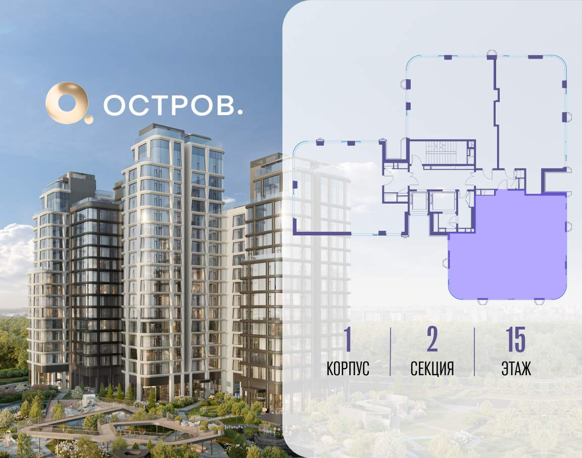 Продаётся 4-комн. квартира от застройщика: общая площадь 123.50 м, жилая 50.30 м, кухня 37.20 м, 15-й этаж, жилой квартал «Остров 12», корпус 1 (секция 2) . Срок сдачи: 1 квартал 2029 года. 3 санузла (1 раздельный и 2 совмещенных) . В жилой зоне 2 больших окна на одну сторону, хорошая инсоляция. Позвоните сейчас и забронируйте квартиру! ОСТРОВ от Донстрой - жилой комплекс на западе Москвы, в Мневниковской пойме. Уникальное преимущество комплекса - в том, что он обособлен от города рекой и природным парком (650 га) . Благодаря природному окружению эта территория имеет лучший экологический рейтинг в столице. Кварталы ОСТРОВА объединены ландшафтным дизайном в единое пространство - с набережными и Центральным бульваром. На ОСТРОВЕ любые объекты, необходимые для полноценной жизни и отдыха, находятся на расстоянии 15-минутной прогулки. Торговый центр и супермаркеты, кафе и рестораны, фитнес, салоны красоты, школы и детские сады. А также крупнейший в Москве спортивный кластер. Декларация: https://xn--80az8a.xn--d1aqf.xn--p1ai/files/70726F6A6465636C2E646F63732E697A643AA99B131122144E209F4F843ADF9A3D27?inline=1